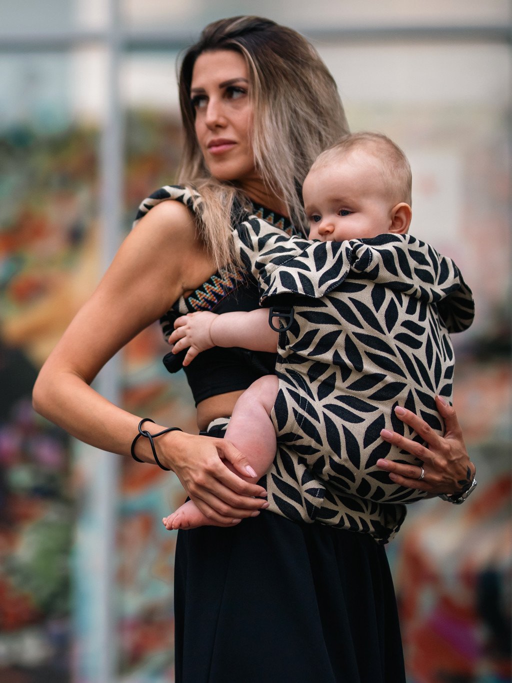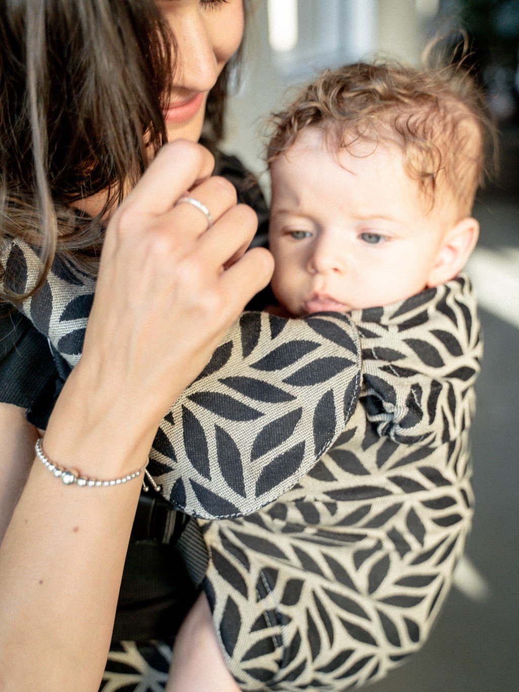 - elasticity of the material ensures perfect enlacement and adapting to the body of the baby, baby’s weight is perfectly distributed