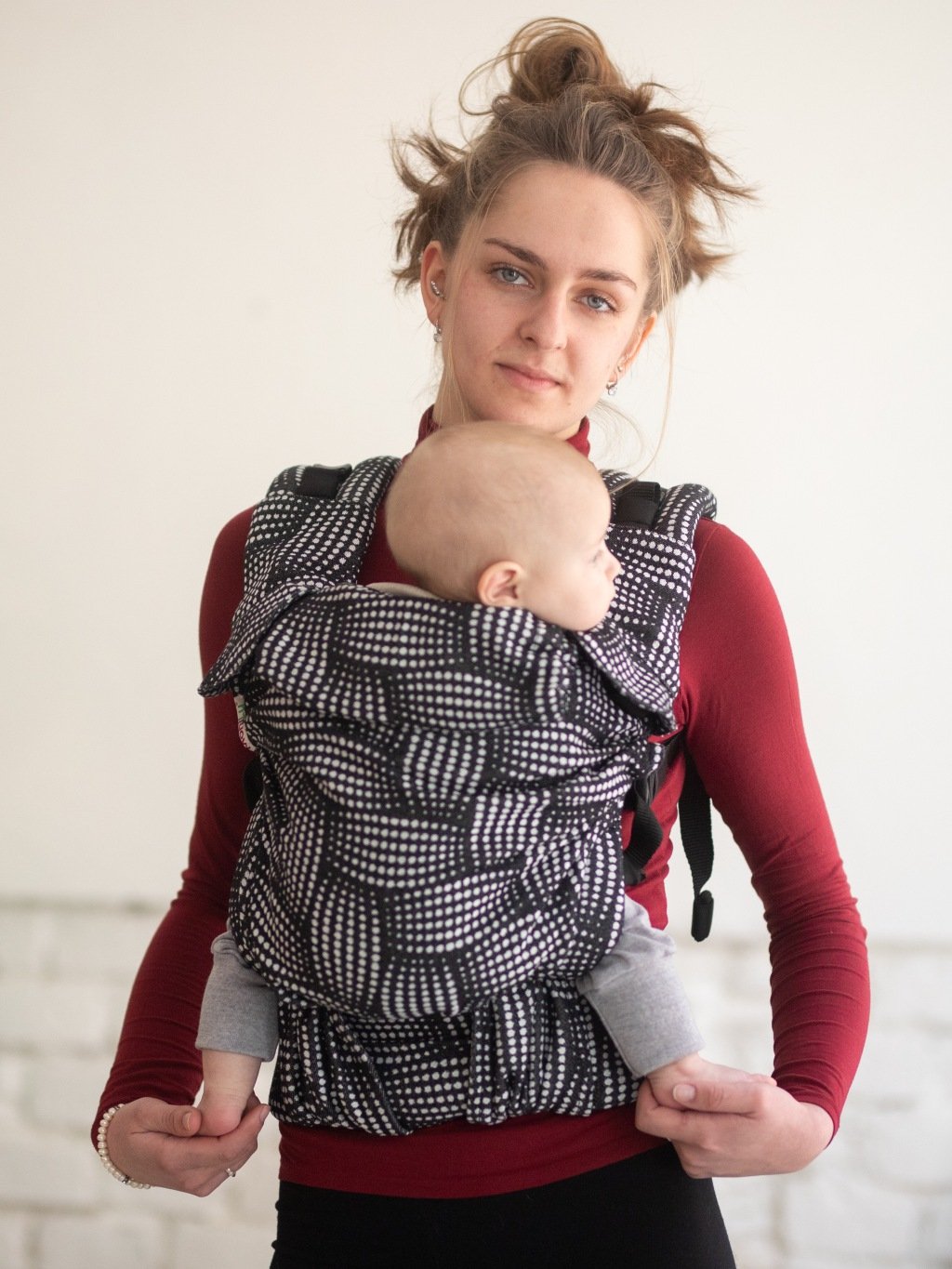 Adjustable ergonomic carrier MoniLu UNI is suitable for babies from 2 months (height ~ 55 cm) and 5 kg up to the age of two and half/ three years (height ~ 95 cm).