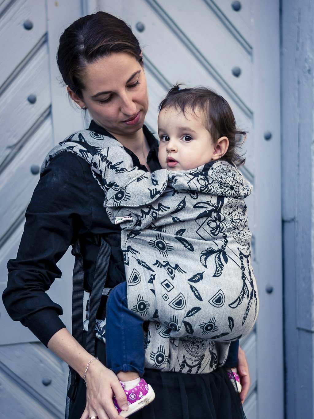 The fully adjustable babycarrier MoniLu UNI PLUS is suitable for children from 1.5-2 years (75-80 cm) to 4-4.5 years (110 cm, 30 kg).