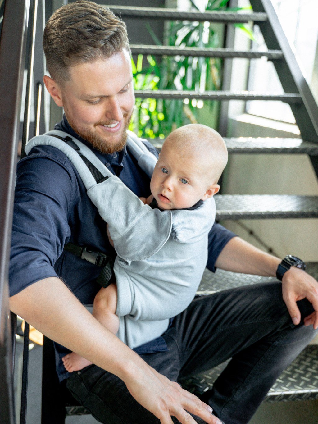 - maximum comfort for the baby and the parent – front, back and also hip carry positions