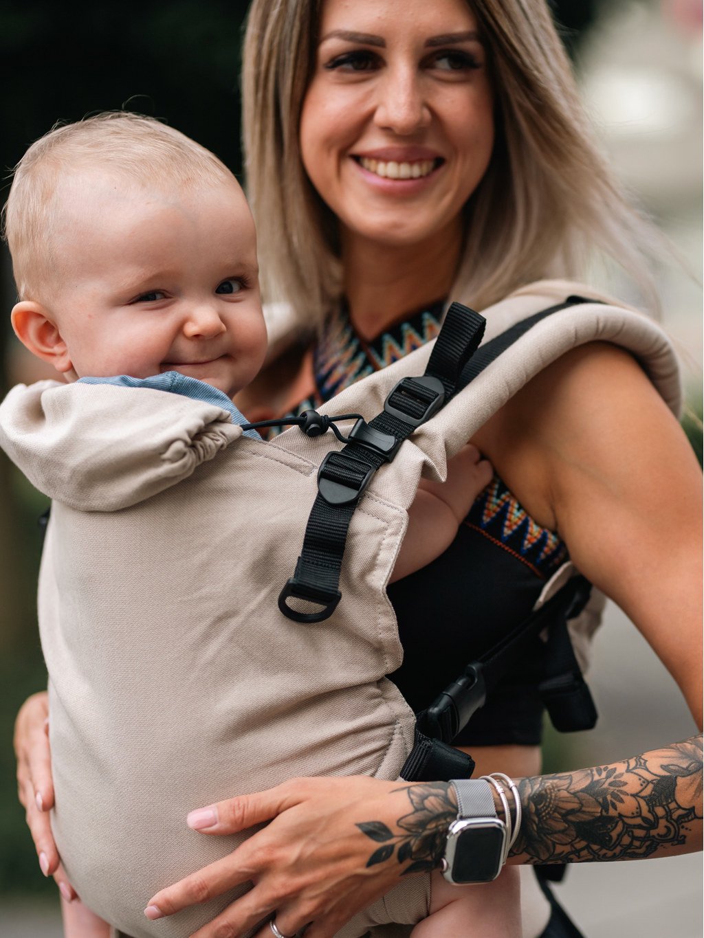- unique way of switching the side straps under the baby’s bum, which eliminates the pressure on the spine in first months of life