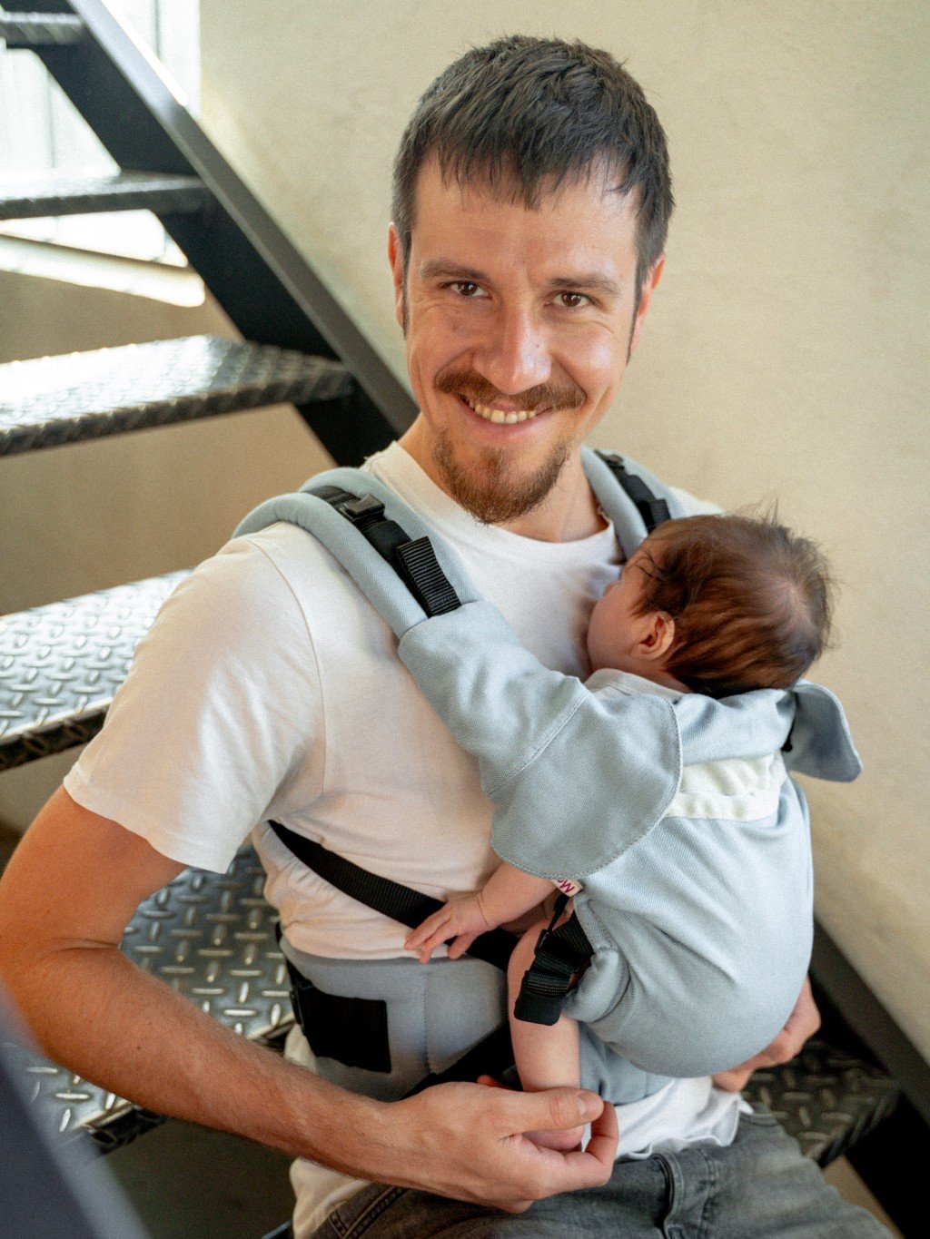 - maximum comfort for the baby and the parent – front, back and also hip carry positions