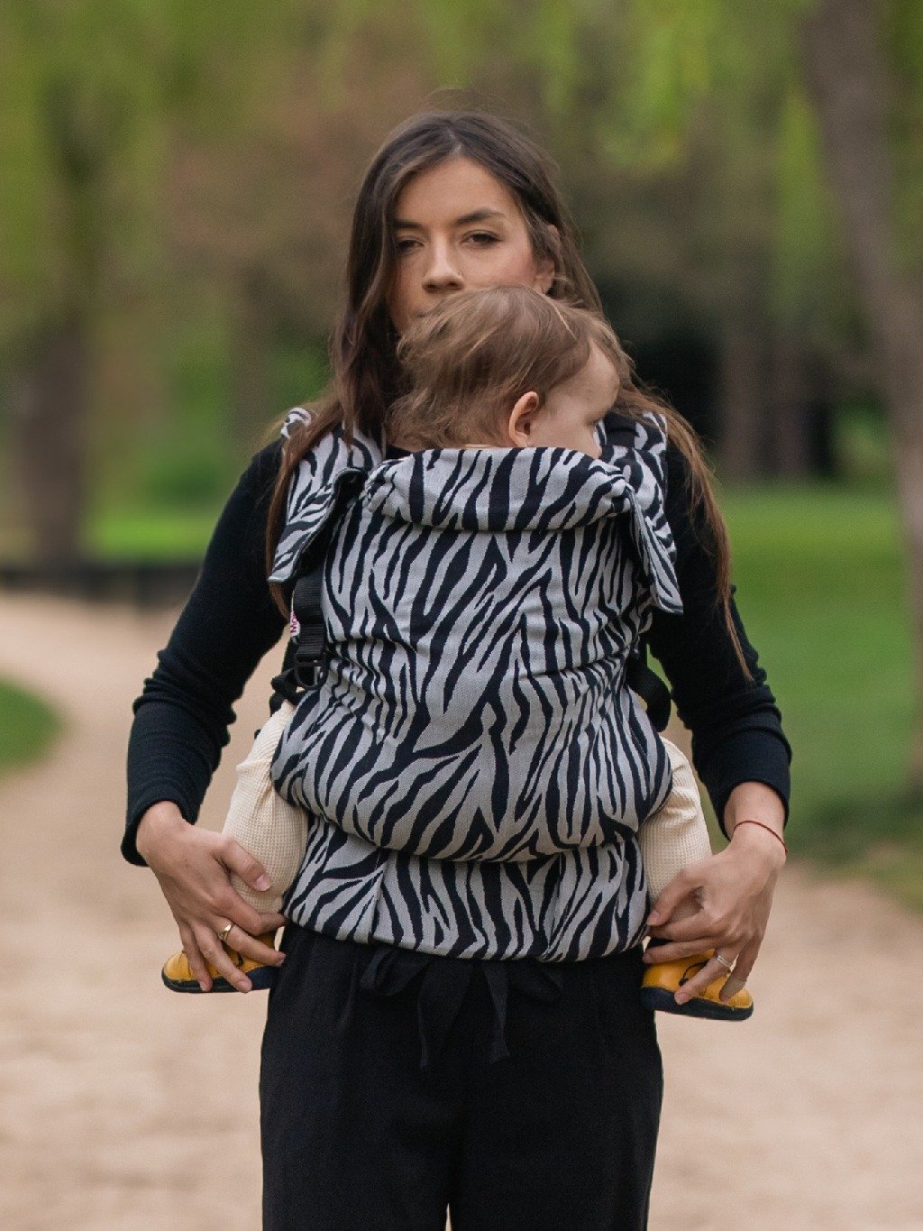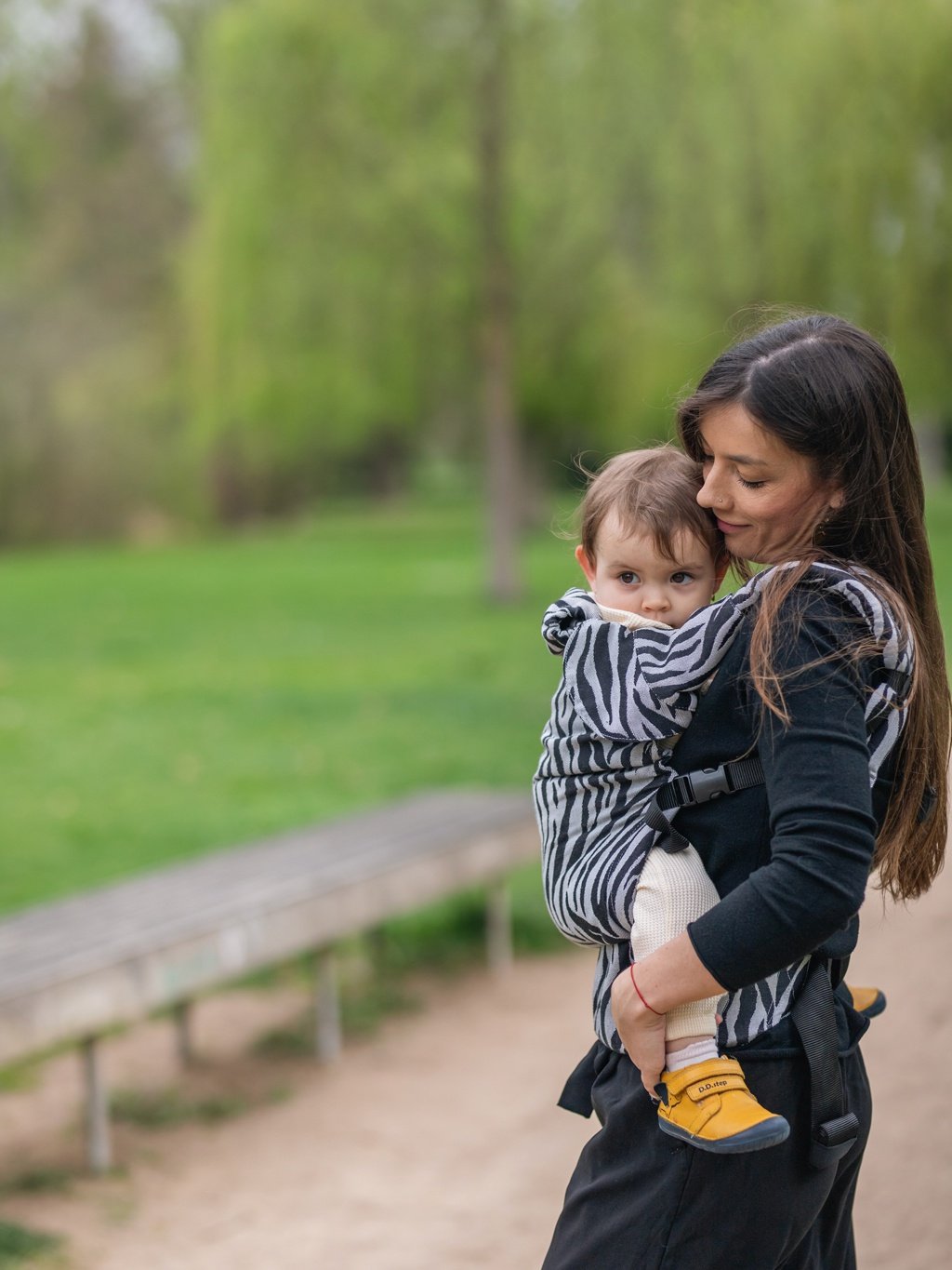 - attested ergonomic carrying in orthopedically correct M-position, beneficial for hip and spine development