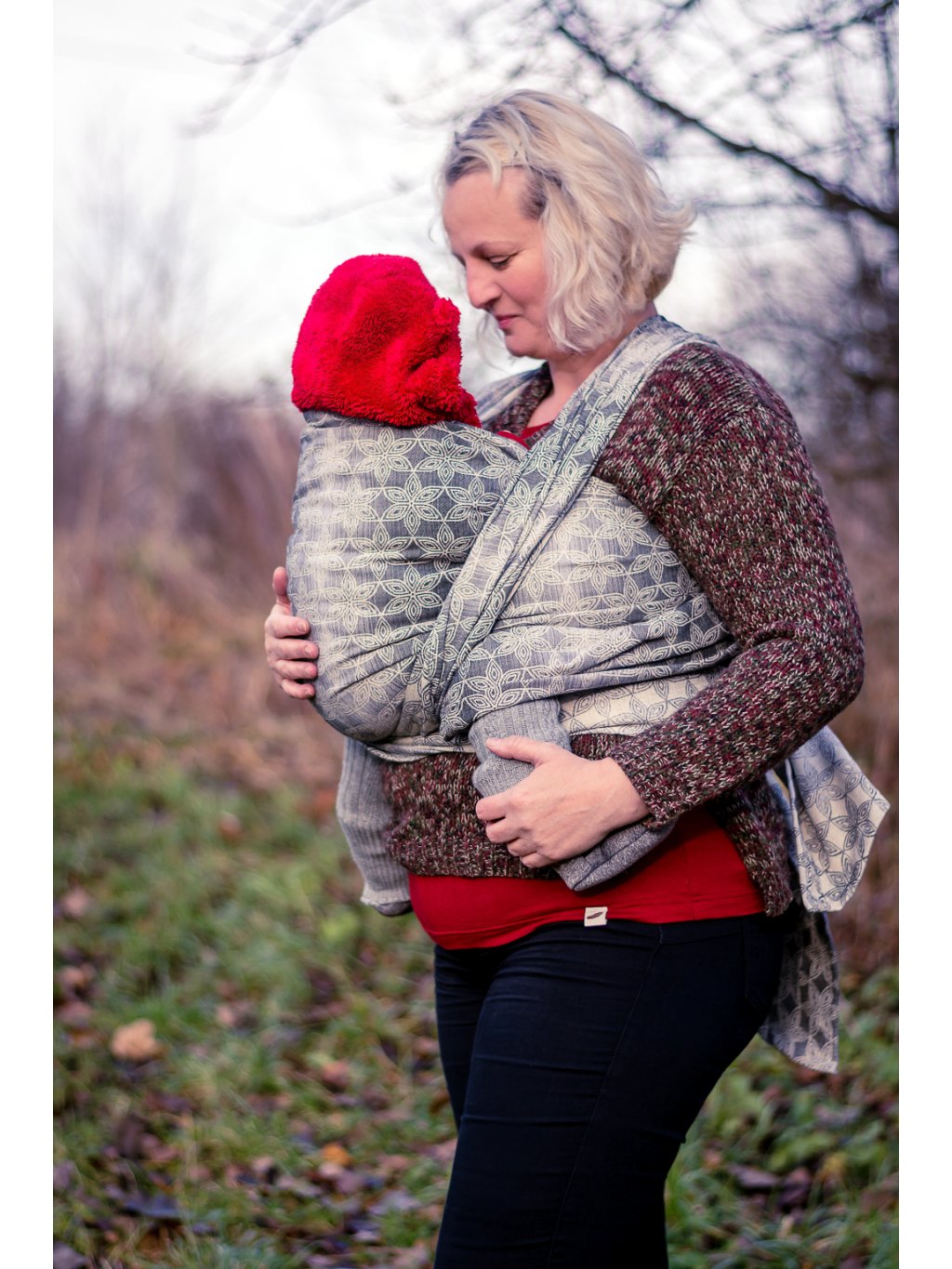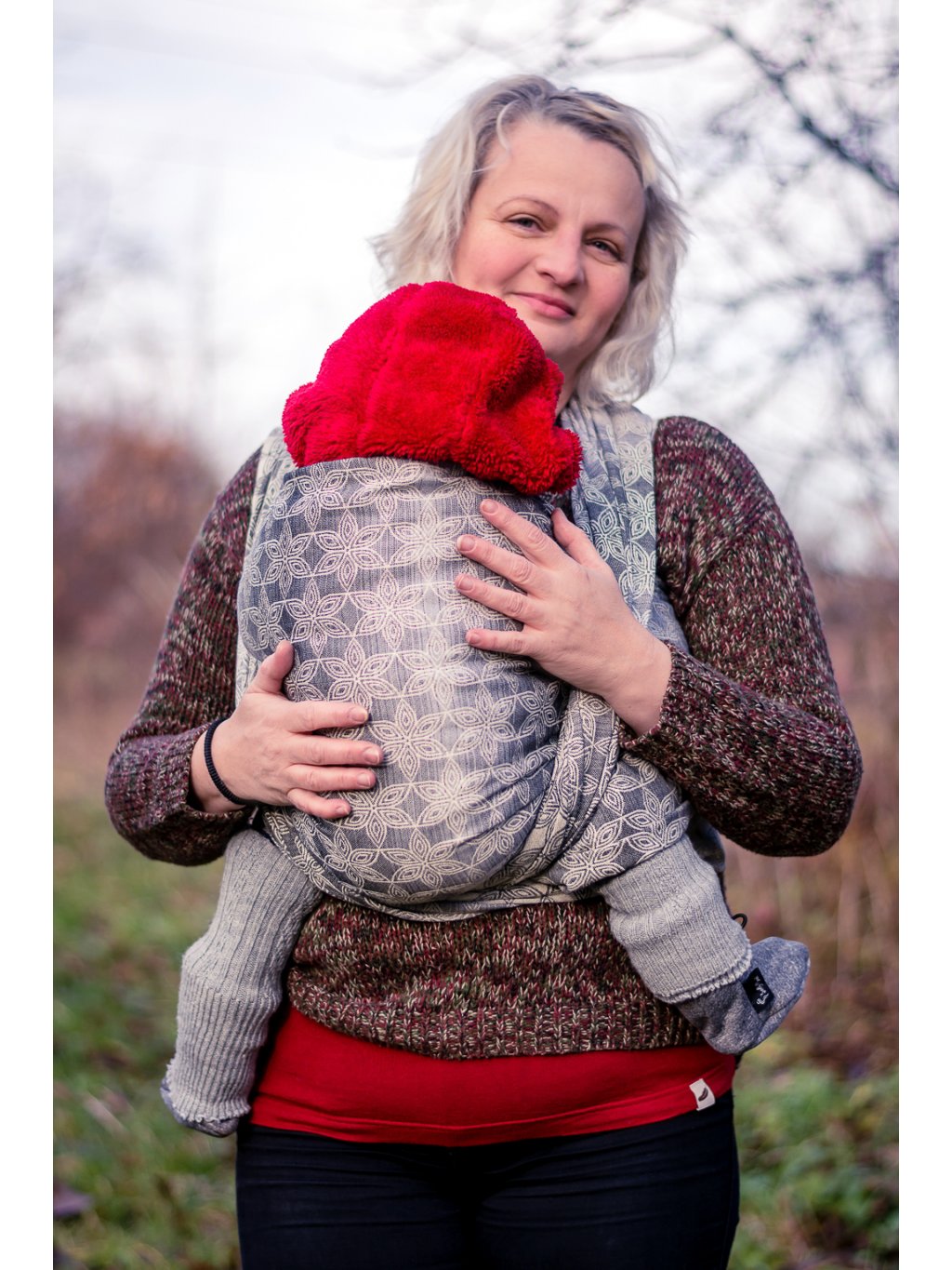 Universal baby wrap suitable for the entire wearing period. The wrap is double-sided and has beveled edges for easier binding.